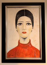 A lovely rendition of Lowry's ‘Portrait of Ann’ painted by L.S Lowry in 1957. It is debated that this work depicts Carol Ann, a schoolgirl that wrote to Lowry asking for artistic advice and went on to become a close friend of the artist. . Oil on canvas. (The canvas has been repaired at some point)